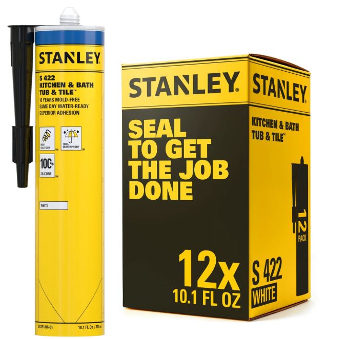 Stanley S422 Silicone Sealant is a high-performance, acetoxy cure clear waterproof sealant designed for gap filling and sealing in a wide range of sanitary applications. This 100% silicone sealant prevents mold formation on its surface, ensuring a bright and clean finish due to its outstanding mildew and fungus resistance. It offers excellent resistance to direct sunlight, rain, snow, and ozone, making it perfect for both indoor and outdoor use. Ideal for sealant sink and tub sealer applications; it provides a fast-drying silicone solution for various needs.